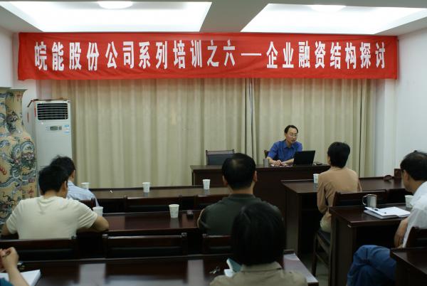 2007年5月20日上午,由皖能股份有限公司人力資源部主辦的全員系列培訓之六----《企業(yè)融資結構探討》,在六樓會議室舉行,由財務總監(jiān)盛勝利主講。