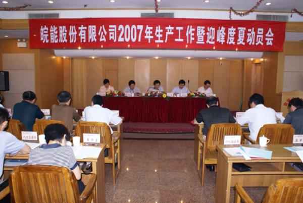 5月30日,皖能股份公司2007年生產(chǎn)工作暨迎峰度夏動(dòng)員會(huì)在皖能山水賓館召開,股份公司總經(jīng)理吳優(yōu)福、副總經(jīng)理施大福、財(cái)務(wù)總監(jiān)盛勝利出席會(huì)議,參加會(huì)議的有股份公司各發(fā)電企業(yè)生產(chǎn)副廠長(zhǎng)、生技、安監(jiān)、燃料部門負(fù)責(zé)人,以及股份公司各部室負(fù)責(zé)人,省電力燃料公司總經(jīng)理陳小惠、省電力科學(xué)研究院副院長(zhǎng)蔡培應(yīng)邀參加會(huì)議,會(huì)議由副總經(jīng)理施大福、安全生產(chǎn)部主任俞民主持。