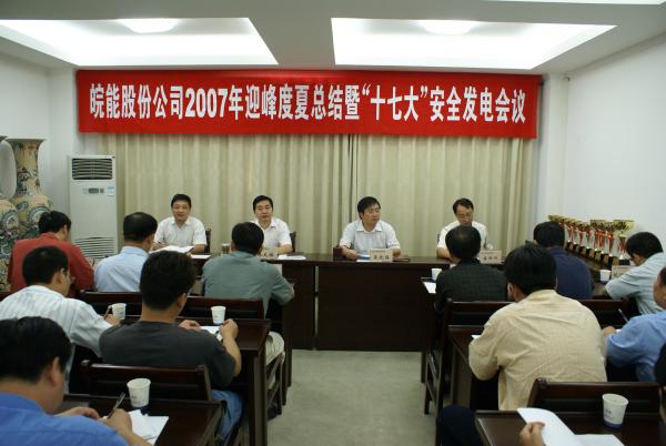 9月26日,股份公司召開了2007年迎峰度夏總結(jié)會(huì)議,股份公司各部門負(fù)責(zé)人以及各發(fā)電企業(yè)分管生產(chǎn)的領(lǐng)導(dǎo)及安監(jiān)、生技部門負(fù)責(zé)人參加了會(huì)議。股份公司施大福副總經(jīng)理對(duì)股份公司2007年迎峰度夏工作進(jìn)行了全面的總結(jié),并對(duì)國(guó)慶及“十七大”期間安全生產(chǎn)工作進(jìn)行了布置。財(cái)務(wù)總監(jiān)盛勝利宣布了今年迎峰度夏勞動(dòng)競(jìng)賽優(yōu)勝單位和機(jī)組名單,馬鞍山萬(wàn)能達(dá)發(fā)電公司奪得一等獎(jiǎng),淮北國(guó)安公司、馬鞍山發(fā)電廠、合肥發(fā)電廠獲得了二等獎(jiǎng),馬鞍山萬(wàn)能達(dá)發(fā)電公司#1、#2、#3機(jī)組,安慶皖江公司#1機(jī)組、淮北國(guó)安公司#1、#2機(jī)組、銅陵皖能公司#3機(jī)組獲得了大機(jī)組連續(xù)運(yùn)行獎(jiǎng),公司領(lǐng)導(dǎo)為獲獎(jiǎng)單位和機(jī)組頒發(fā)了獎(jiǎng)杯。會(huì)上,淮北國(guó)安公司做了迎峰度夏工作經(jīng)驗(yàn)介紹,銅陵皖能公司做了迎峰度夏工作總結(jié)。