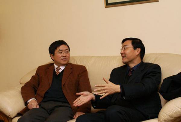 吳優(yōu)??偨?jīng)理與縣委吳建國書記親切交談