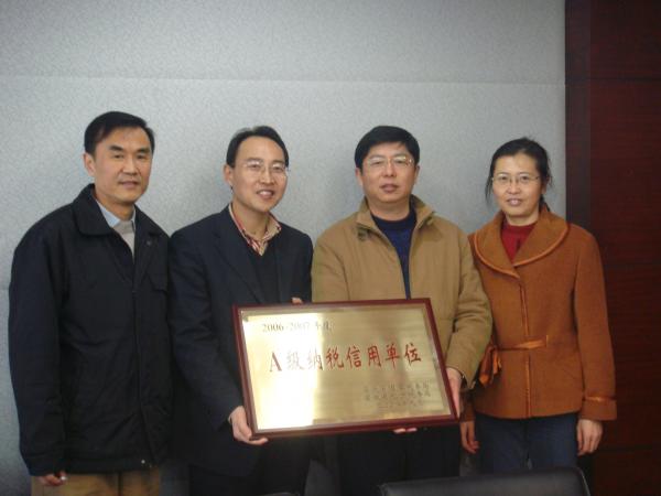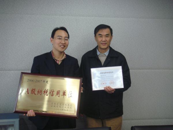 2009年2月25日上午,安徽省國稅局包河分局袁副局長一行蒞臨我公司,向公司頒發(fā)“A級納稅信用單位”證書。