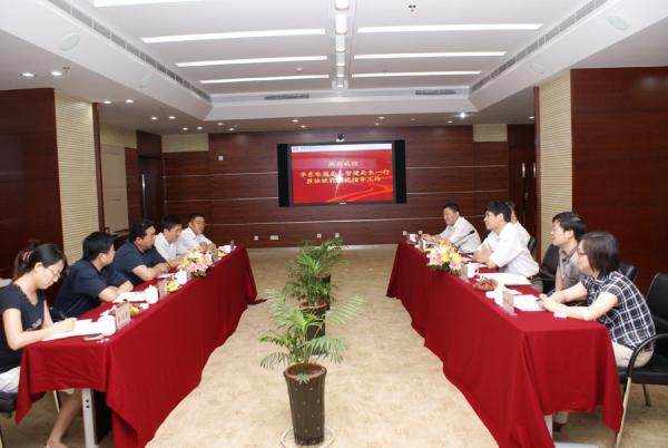 7 月 14 日 下午,華東電監(jiān)局局長丘智建、市場處處長謝敬東、財務(wù)價格處處長楊夢云、辦公室主任鄭逸萌、安徽辦證大廳主任李東明一行到我公司調(diào)研指導(dǎo)大用戶直購電工作。集團(tuán)公司董事長、黨委書記、總經(jīng)理白泰平,集團(tuán)公司副總經(jīng)理、股份公司總經(jīng)理吳優(yōu)福,股份公司副總經(jīng)理施大幅,計劃經(jīng)營部主任朱浩東等同志在能源大廈三樓會議室熱情接待了華東電監(jiān)局領(lǐng)導(dǎo)。