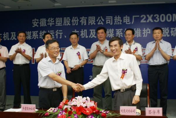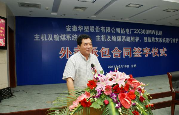 在本次簽字儀式上,華塑股份有限公司還同時(shí)與安徽電建一公司和上海龍凈環(huán)保有限公司分別簽訂了安徽華塑股份有限公司熱電廠2×300MW機(jī)組主機(jī)及輸煤系統(tǒng)維護(hù)、脫硫除灰系統(tǒng)運(yùn)行維護(hù)外委承包合同。