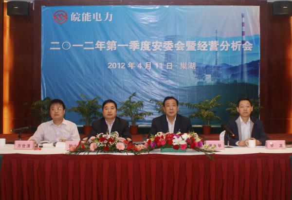 4月11日,皖能股份公司召開2012年一季度安委會(huì)暨經(jīng)營(yíng)分析會(huì)。股份公司、電燃公司、皖能運(yùn)檢公司、各發(fā)電企業(yè)領(lǐng)導(dǎo)及相關(guān)部門負(fù)責(zé)人參加會(huì)議,集團(tuán)公司總經(jīng)理湯大舉到會(huì)并作重要講話。