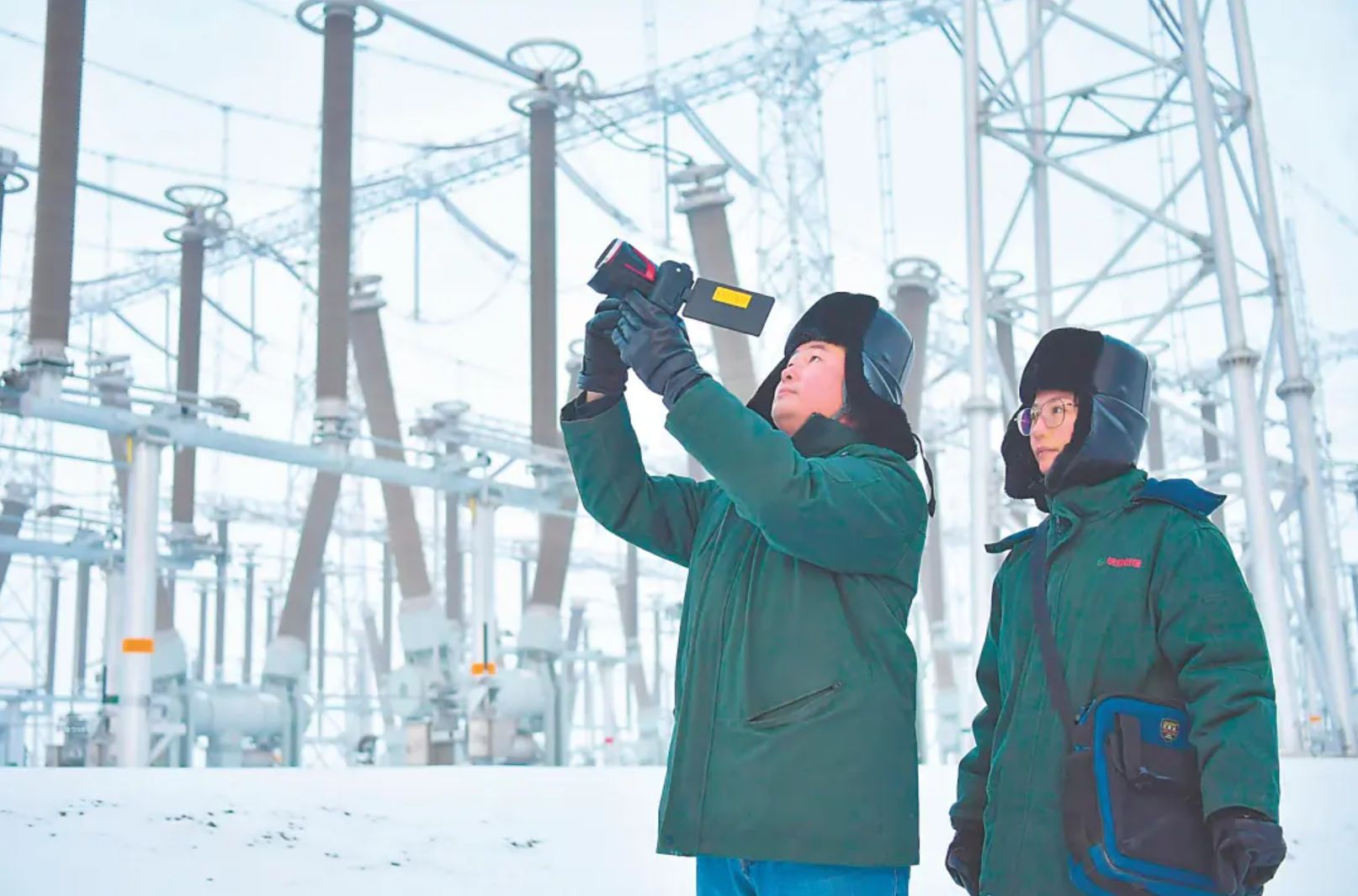 新疆皖能英格瑪電廠工作人員在巡檢升壓站。